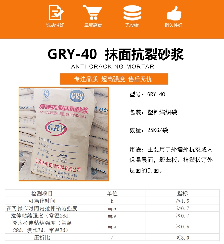 4)抗裂砂漿在儲存過程中,應存放在干燥通風處,避免受潮。
